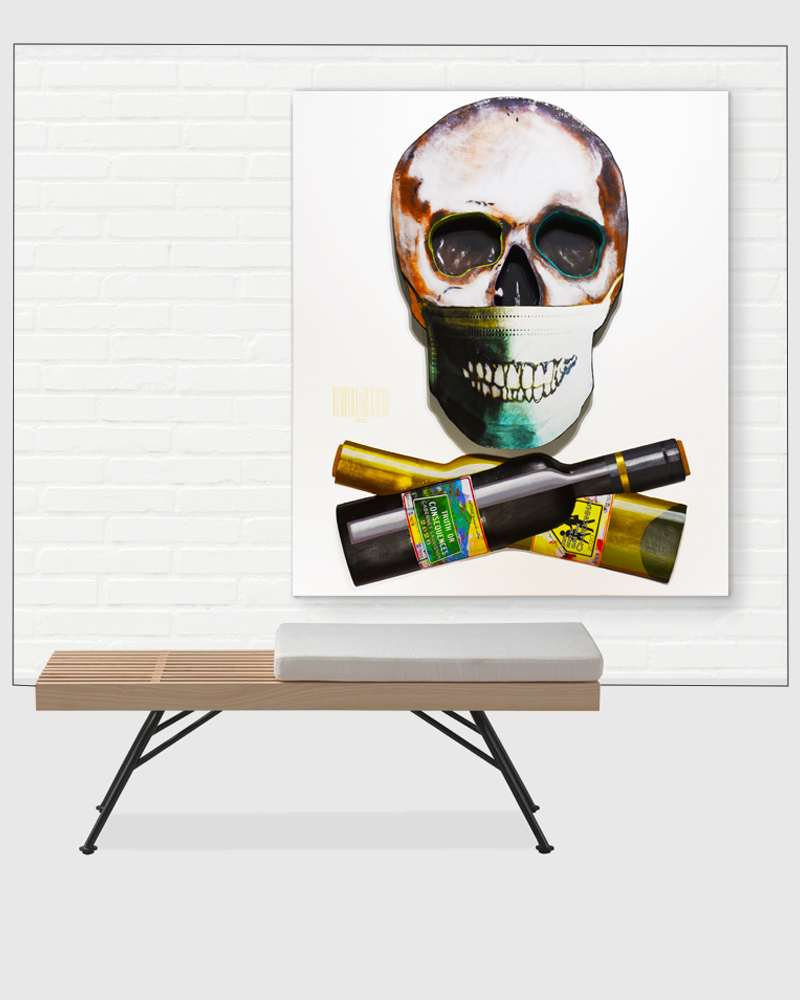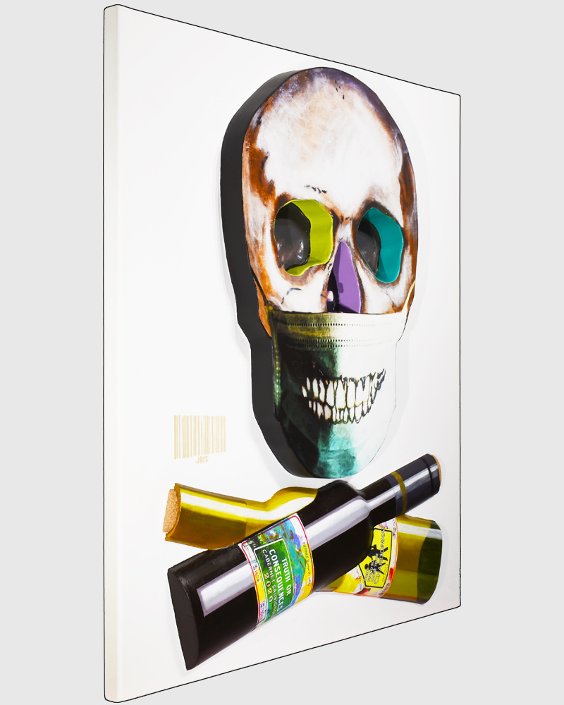 “TRUTH” 45 by 52 inches, acrylic & mixed media (real corks) on 3D panel coated in resin (2020)