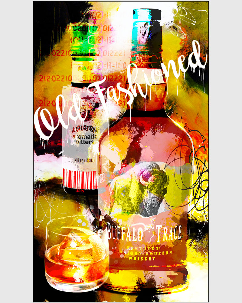 “OLD FASHION” 28 by 48 inches, acrylic - mixed media & GD on canvas mounted to hardpanel coated in resin (2019)