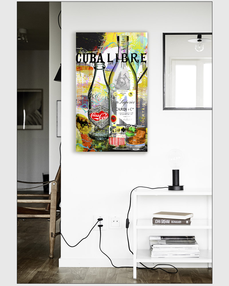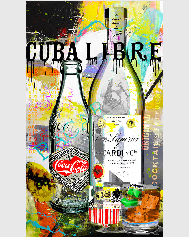 “CUBA LIBRE” 28 by 48 inches, acrylic - mixed media & GD on canvas mounted to hardpanel coated in resin (2019)