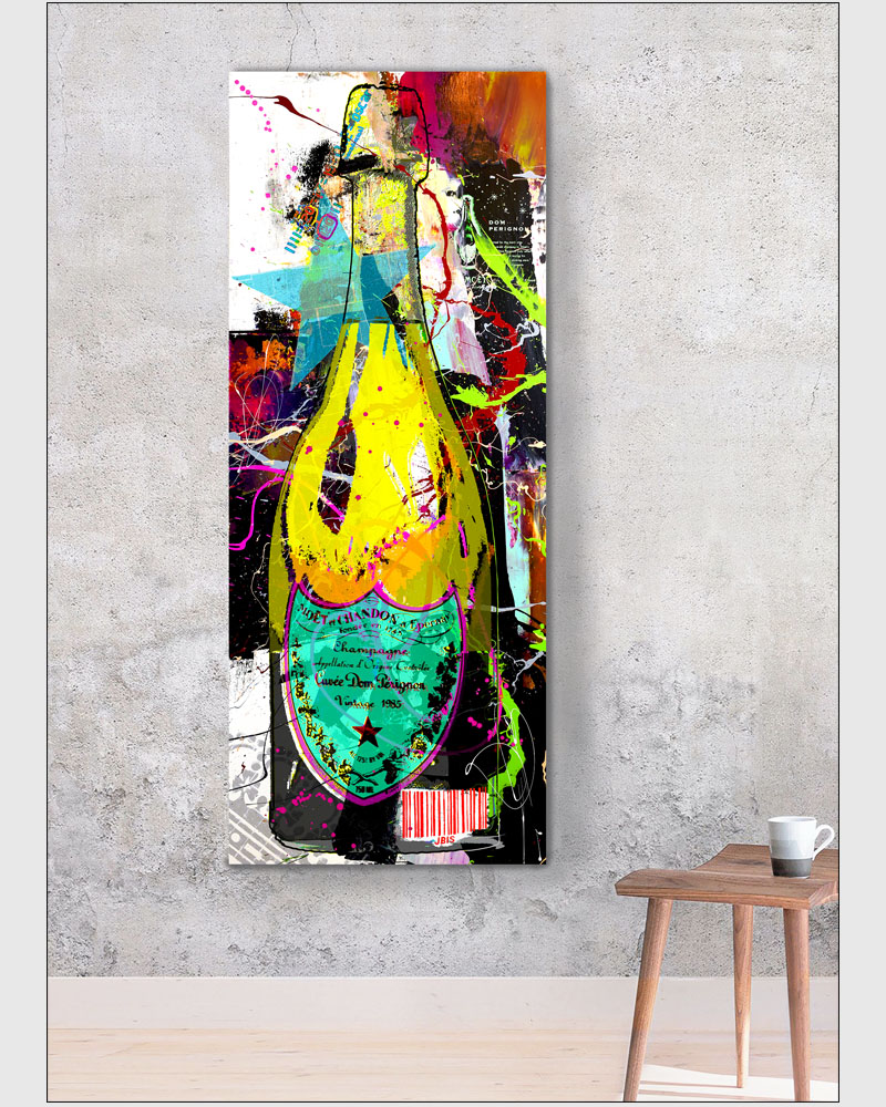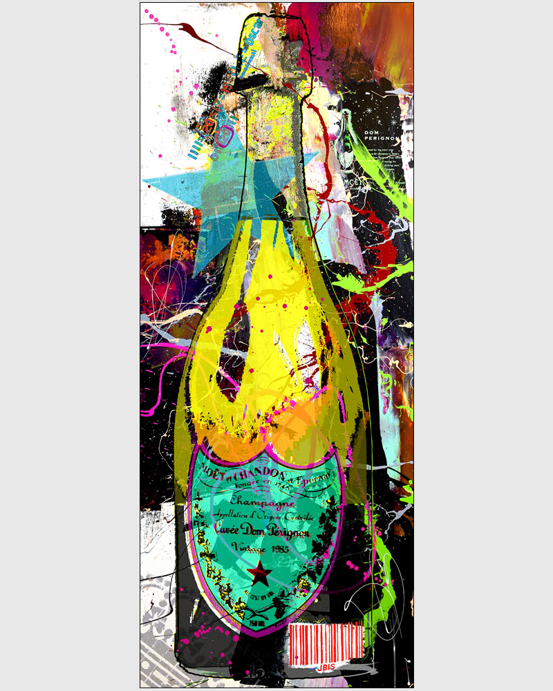 “Pérignon” 24 by 60 inches, acrylic - mixed media & GD on canvas mounted to hardpanel coated in resin (2019)