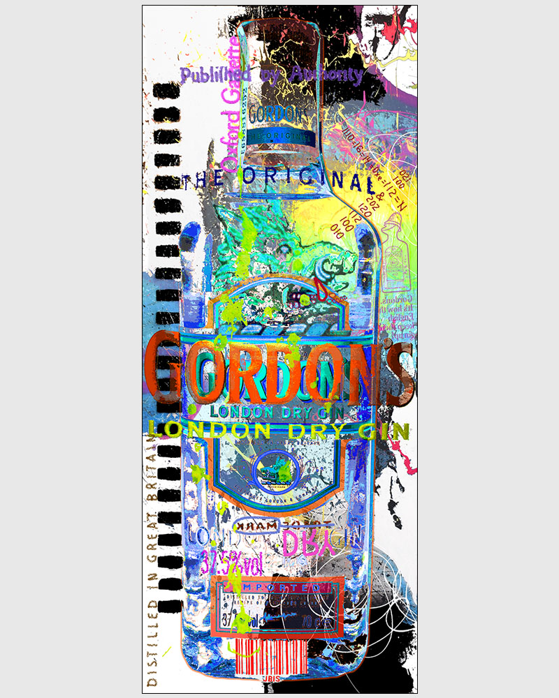“GORDONS” 24 by 60 inches, acrylic - mixed media & GD on canvas mounted to hardpanel coated in resin (2019)