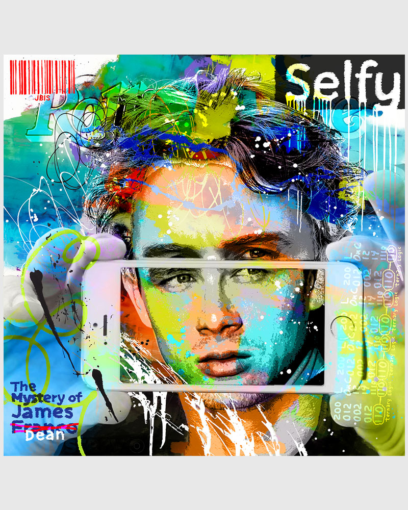 “SELFY JAMES” 45 by 45 inches, acrylic - mixed media & GD on canvas mounted to hardpanel coated in resin (2019)