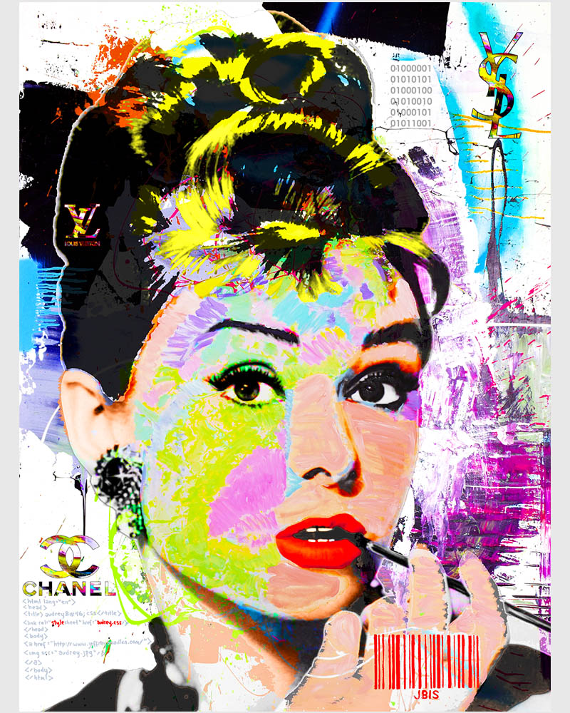 “Holly” 30 by 40 inches, acrylic - mixed media & GD on canvas mounted to hardpanel coated in resin (2020)