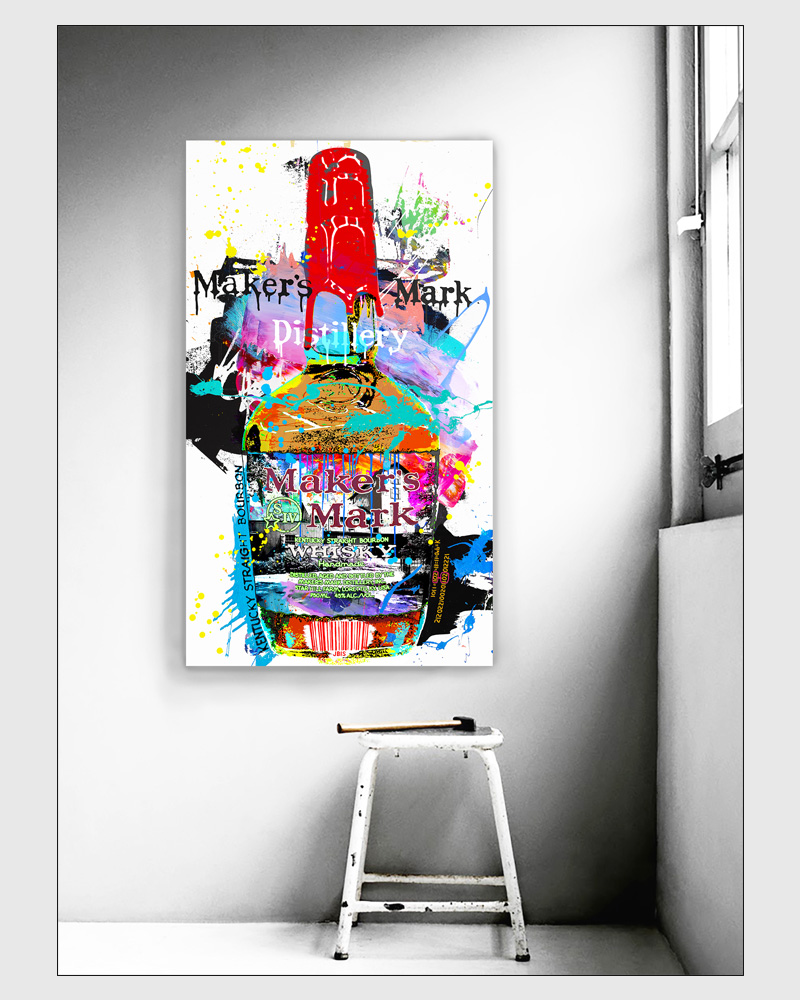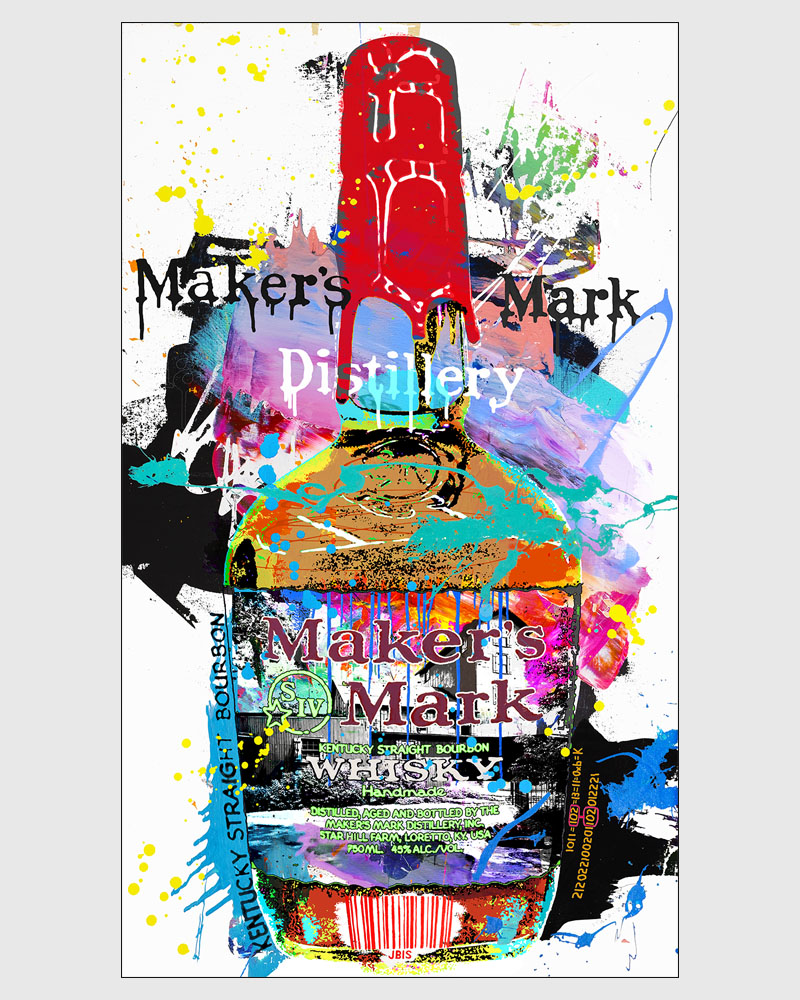 “MAKERS MARK” 28 by 48 inches, acrylic - mixed media & GD on canvas mounted to hardpanel coated in resin (2020)